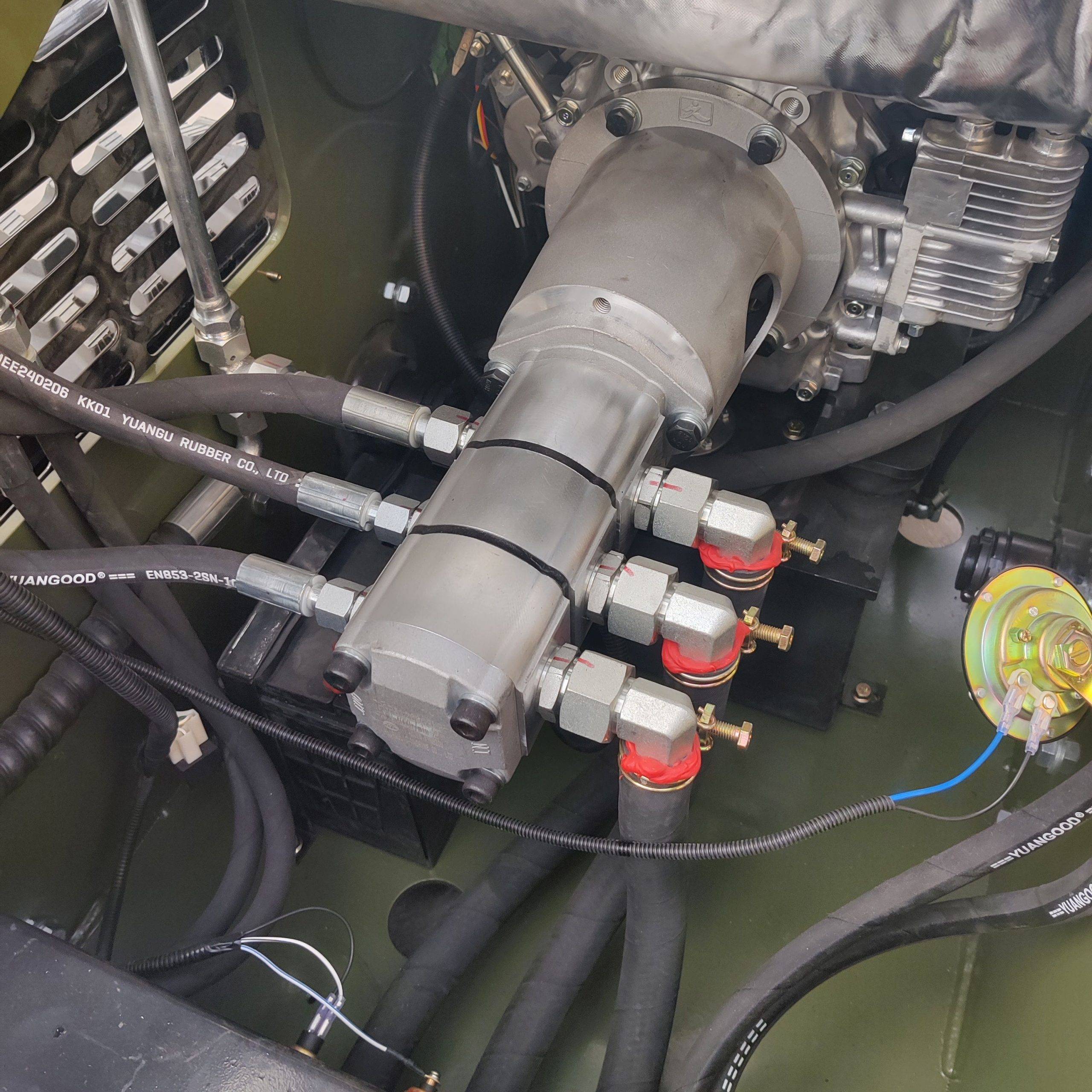 Our skid-steer machine, the TYPHON STOMP, stands tall as a 1830 lb. mini loader with a hydraulic four-wheel drive. With a maximum torque of 48.3NM at 2500 rpm, this excavator exhibits reliability and maneuverability in diverse conditions. Its compact, robust, and efficient design makes it the ideal choice for small construction projects, offering exceptional performance in tasks like digging, grabbing, or bulldozing within parks, gardens, farms, and public spaces.